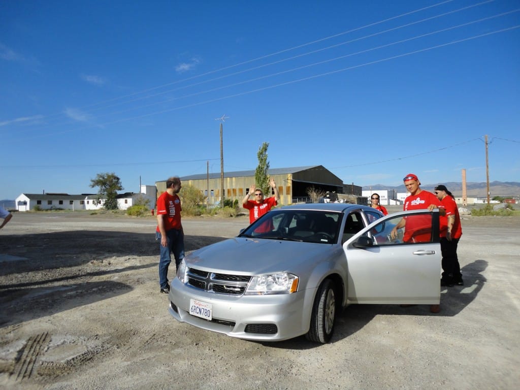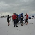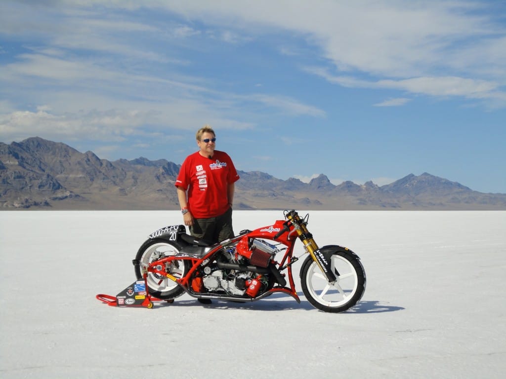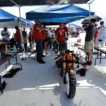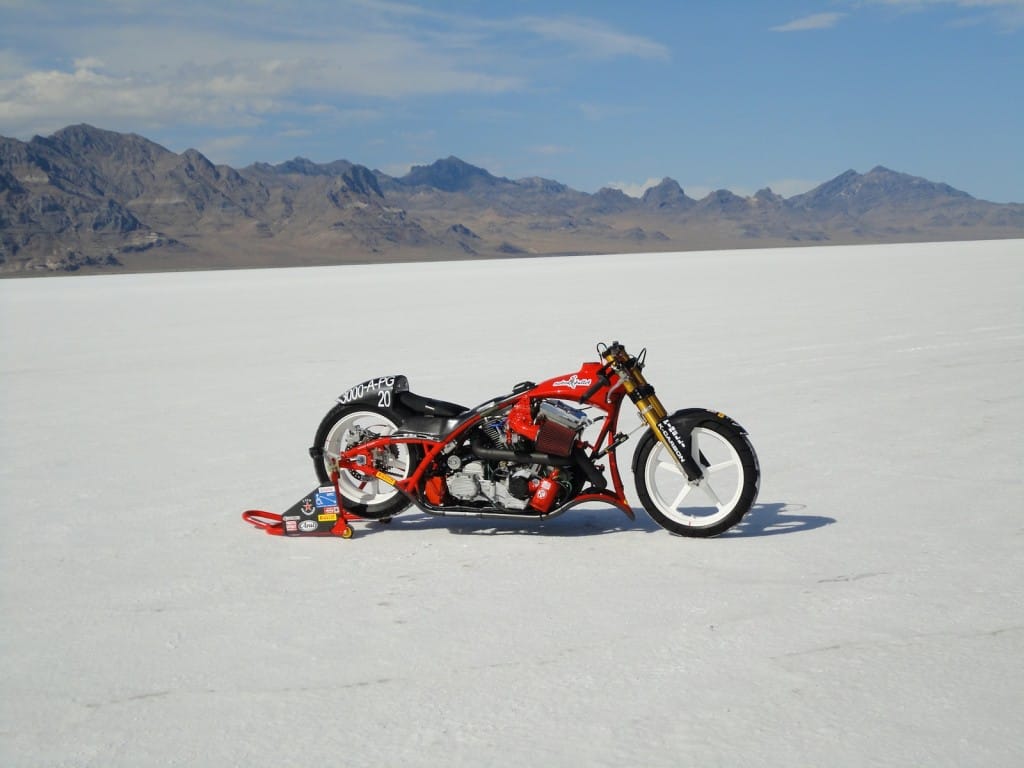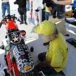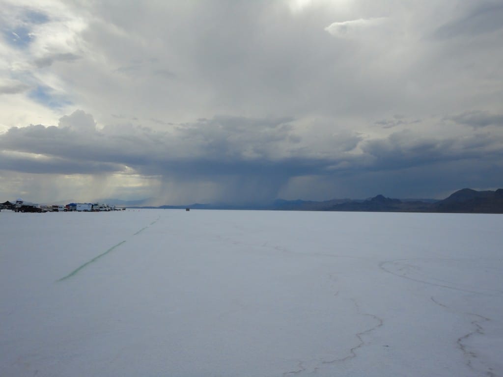 The day of decision. Today the technical inspection is on the agenda. But before that happens, we still had to pick up the U-haul (small truck for the race bike). And there we were ready by 9 clock and it worked after all. In a convoy we drove to the place where they put the box to be stored and were curious to find it ina  and were curious to see what was supplied in the box condition. People all clear, everything has arrived safely and as we drove by 12 clock finally to Bonneville Salt Flats to the. One thing I can say before, would anyone complain in Switzerland over 33 degrees, then I do not know what was out here today. There were around 45 degrees! After the campers,  the vehicles and the U-Haul were parked and placed it, our team worked like bees in the house. Everyone grabbed some stuff and in an instant all the material was unpacked. Together with Markus, I stood after in line at the pre-entry to be done, to place the forms for the technical inspection and to confirm the registration. After an hour it was done and now we had to take only the last hurdle. Here also was announced to be patience for a good two hours we were at the row. Drew, chief engineer FIM inspected the bike and found just three little things that need to be done by tomorrow, so it is allowed for the race. Meanwhile, Markus has took on the race suit so few photo sessions with the great light on the Salt Flats of Horst Roesler could be made yet. And then it started with the first ride – what a feeling, after driving up and down it could feel the power of it! Incidentally, it is not easy and it will not be a cakewalk for Markus. But that’s Bonneville, you have to earn it.